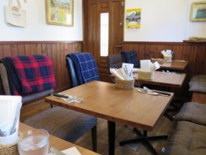 店内はカントリー調で素敵な雰囲気。広くはないものの、テーブル席がありランチやカフェを楽しむことができます。