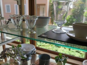 サラカフェではランチで使用している食器を店内で購入することもできるそうです。とても参考になりますね。