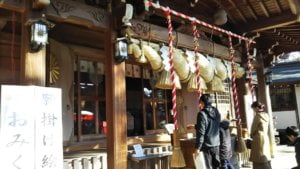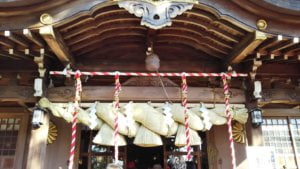 六所神社の境内を散策すると、古い歴史の数々を垣間見ることができます。出雲出身である櫛稲田姫命を祀っているこちらの神社では、立派な大しめ縄飾りも出雲で作られているそうです。